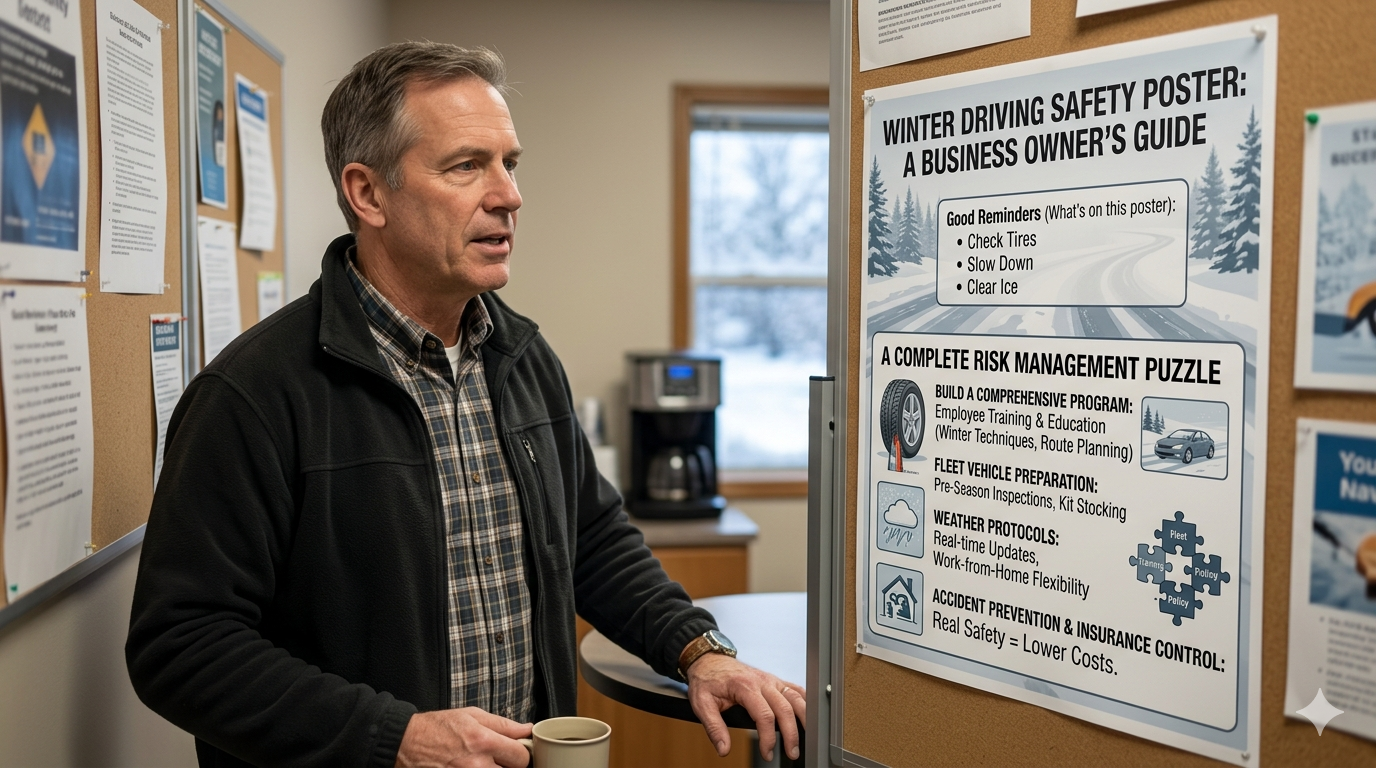 According to the Network of Employers for Traffic Safety (NETS), the average cost of a crash involving an employee injury is a staggering $74,000. If a fatality is involved, that figure skyrockets into the millions. This is the reality that a simple poster cannot prevent on its own. It serves as a passive reminder, but true risk management requires an active, multi-layered strategy. This guide is designed for business owners, operations managers, and risk advisors in the Midwest who understand that effective safety programs are built, not just posted. We’ll break down the four pillars of a robust winter driving safety program: a formal policy, rigorous vehicle preparation, continuous driver training, and a clear incident response plan. Your winter driving poster will become what it was always meant to be: the visible capstone of a strong, underlying safety culture.